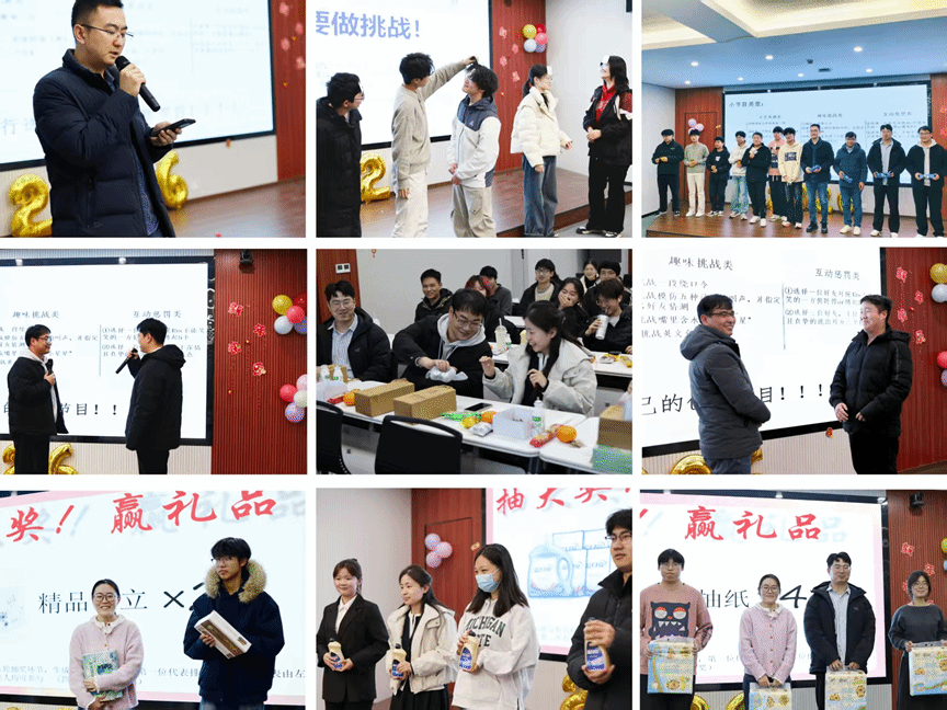 互动游戏将气氛推向高潮。“击鼓传花”、“你划我猜”、“不要做挑战”等环节,师生同乐、机智交锋,现场成为一片欢乐的海洋。多轮抽奖活动更让惊喜接连不断,传递着节日里的温暖与祝福。