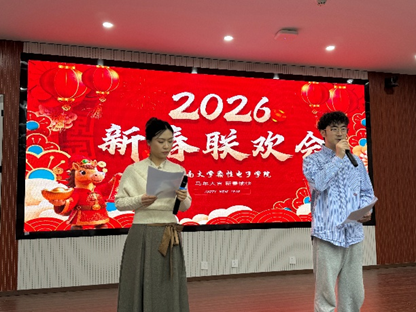 研究生新春联欢会在九章学堂北组团C210会议室温馨举行。学院师生欢聚一堂,共迎新春,在欢声笑语中回顾奋斗足迹,展望崭新征程。本次活动特别为寒假期间坚守科研岗位的留校研究生们带来了节日的温暖与学院的关怀。
