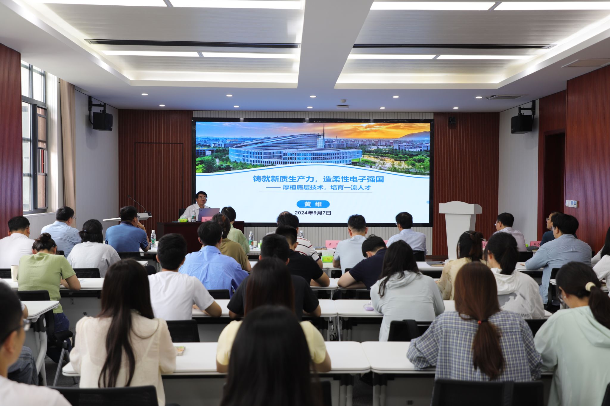 9月7日,河南大学柔性电子学院河南省柔性电子产业技术研究院在九章学堂报告厅顺利举行黄维院士开学第一课活动。中国科学院院士、俄罗斯科学院外籍院士、美国国家工程院外籍院士、研究院院长黄维教授,柔性电子学院院长国家杰青陈永华党委书记黄备荒执行院长赵高峰副院长解令海副院长刘振国以及研究院主要负责人出席,学院202414新生全体教职工参加。活动院长陈永华主持。