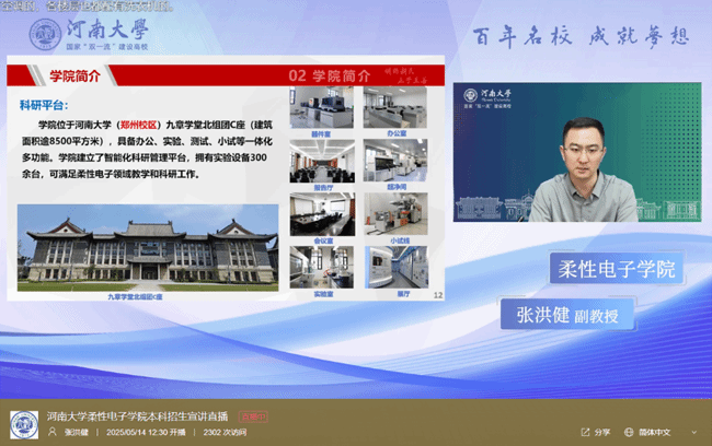 本次“线上+线下”相结合的系列宣讲活动,构建了立体化的宣传格局,不仅有效增进了学校、学院与省内优质中学的沟通与联动,显著提升了我校的社会知名度与美誉度,更为广大优秀学子搭建了一座“认识河大、认同河大、走入河大”的坚实桥梁。下一步,柔性电子学院将持续拓展招生宣传的深度与广度,进一步创新宣传方式,巩固与各生源基地中学的常态化联系机制,为考生和家长提供更及时、准确的政策解读与报考咨询服务,推动高校与高中人才培养衔接合作持续深化,吸引更多有志青年才俊报考河南大学,投身柔性电子这一前沿学科领域。