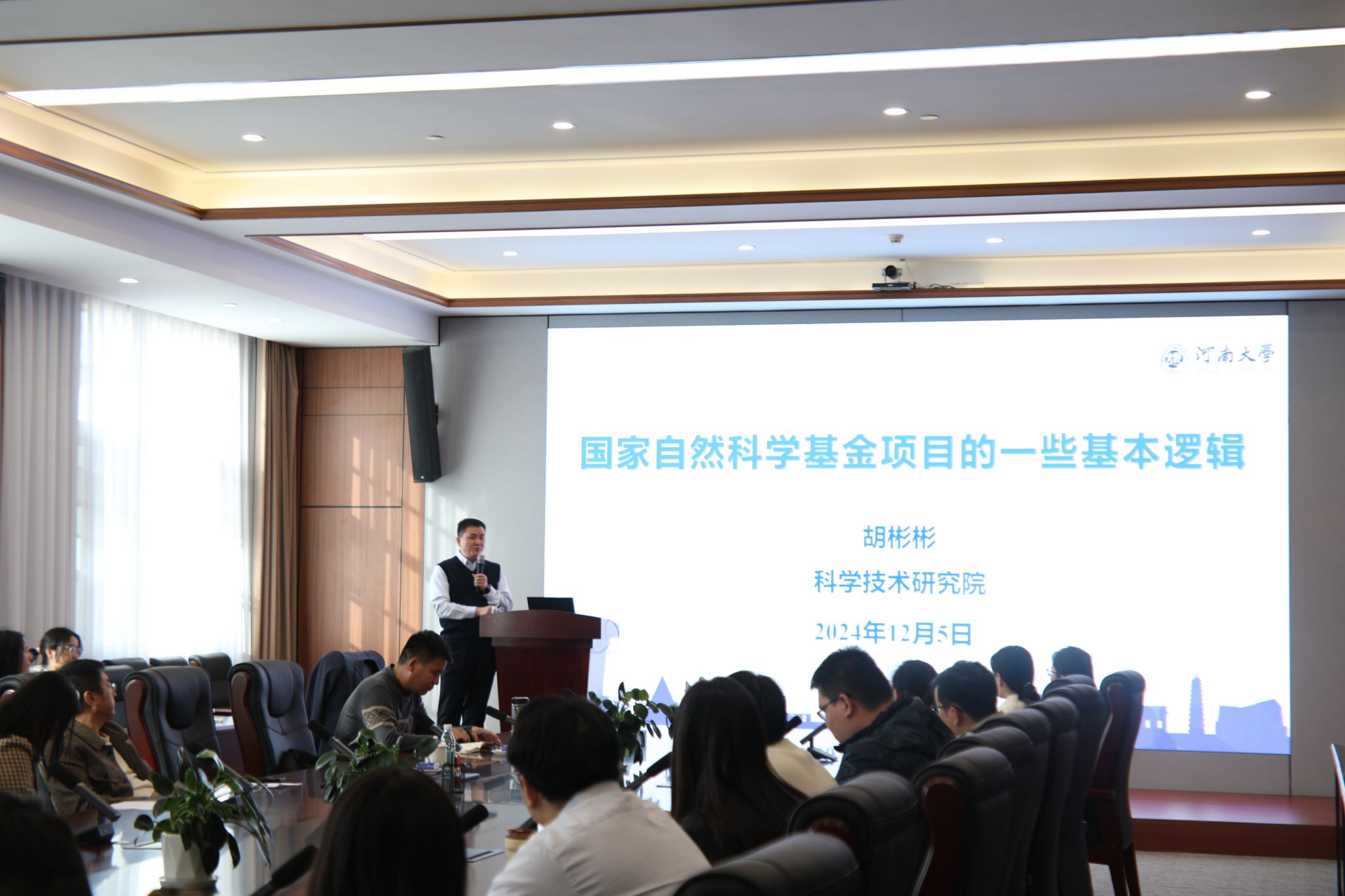 为进一步做好2025年度国家自然科学基金项目申报工作,充分调动和激发青年教师的积极性,提高申报质量,12月5日下午,我校科学技术研究院院长胡彬彬教授应邀到能源科学与技术学院和柔性电子学院作“国家自然科学基金项目的一些基本逻辑”的专题报告,并与学院教师进行交流。能源科学与技术学院、柔性电子学院、龙子湖新能源实验室和河南省柔性电子产业技术研究院的青年教师参会。交流会由柔性电子学院执行院长赵高峰主持。